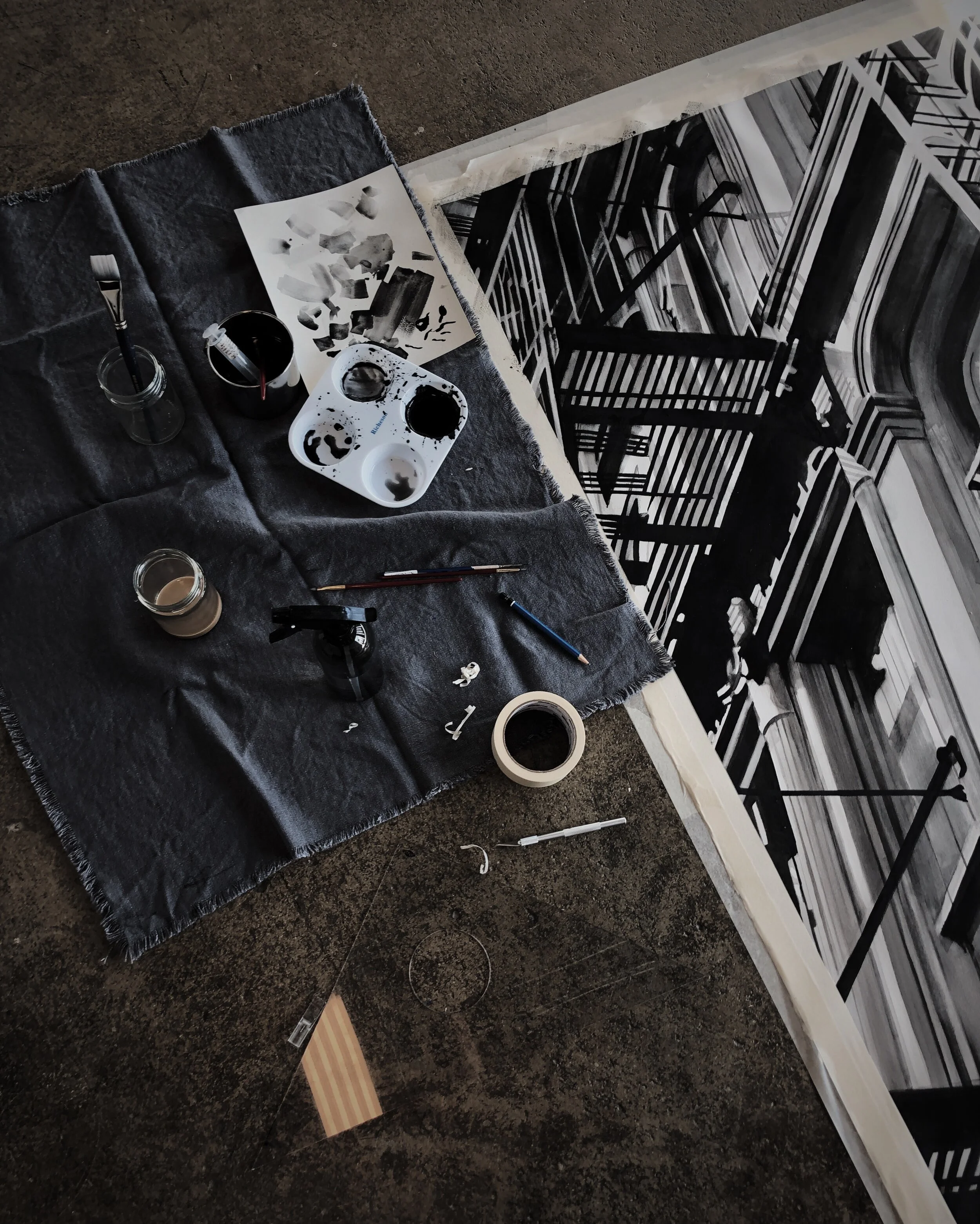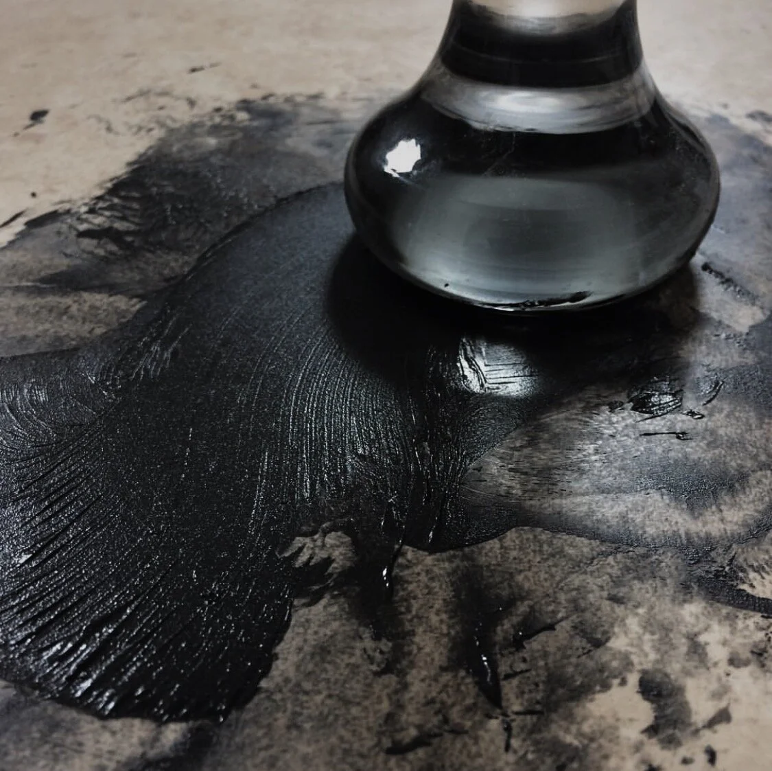 I have always been drawn to materials in their raw elemental state. In 2018, while pregnant with my daughter, I set out to find a natural, earth-friendly painting medium. When research came up short, I started experimenting with activated charcoal — a rich black powder known for its detoxifying properties. When mixed with water the charcoal has a watercolour-like texture, with more grit and grain. To bind pigment to paper, I mixed in honey and gum arabic, then added a few drops of clove essence as a preserver.
